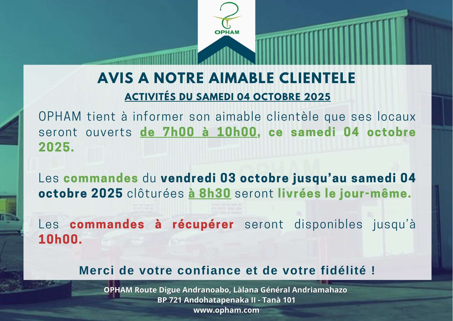 OUVERTURE OPHAM SAMEDI 04 OCTOBRE 2025