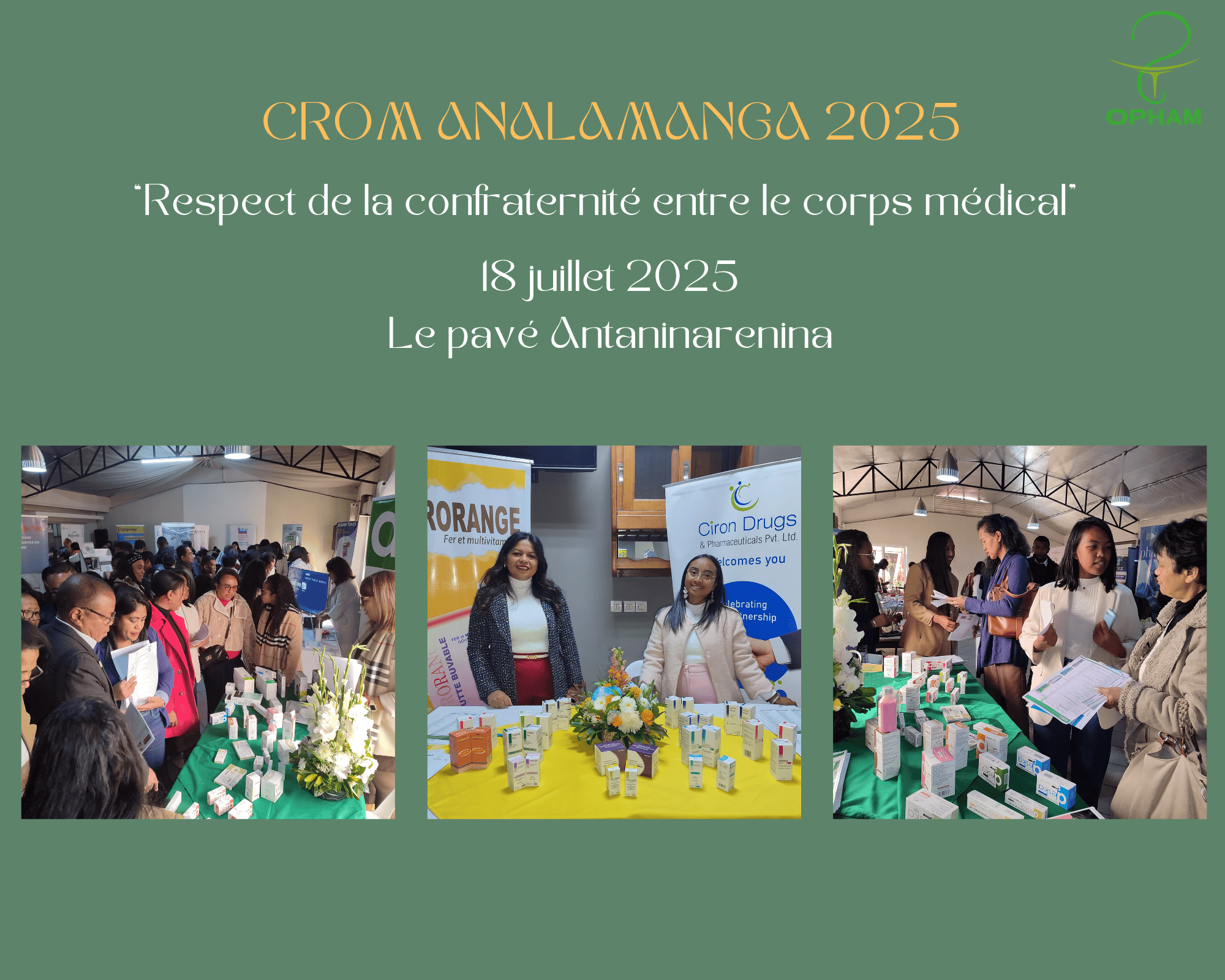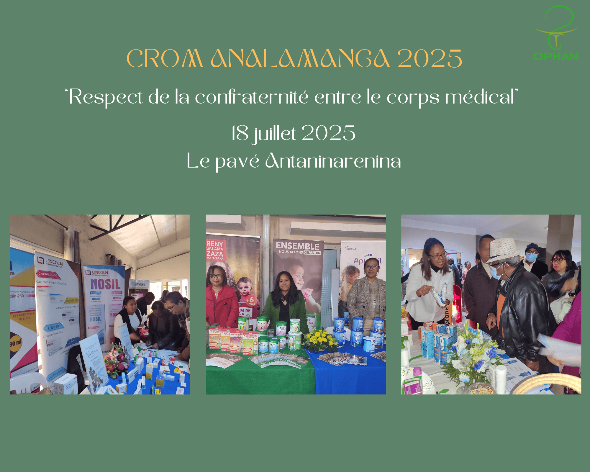OPHAM - Office Pharmaceutique Malgache à la Journée des Médecins d’Analamanga, organisée par le Conseil Régional de l’Ordre des Médecins d’Analamanga (CROM Analamanga), qui s’est tenue le vendredi 18 juillet à l’Hôtel Le Pavé Antaninarenina sur le thème du « Respect de la confraternité entre le corps médical ».