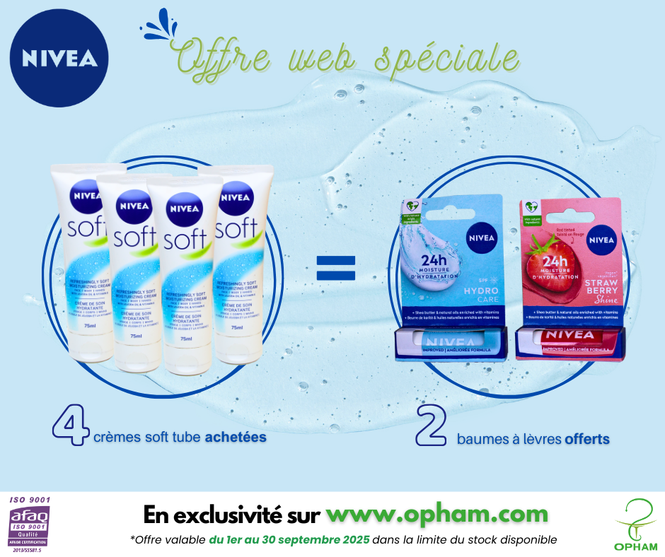 Profitez de nos offres exclusives sur www.opham.com avec 4 crèmes SOFT tube achetées = 2 Baumes à lèvres offerts !