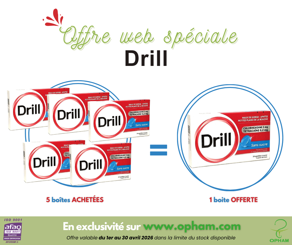 Profitez de nos offres exclusives sur www.opham.com avec 5 boites de DRILL achetées = 1 Boite offerte