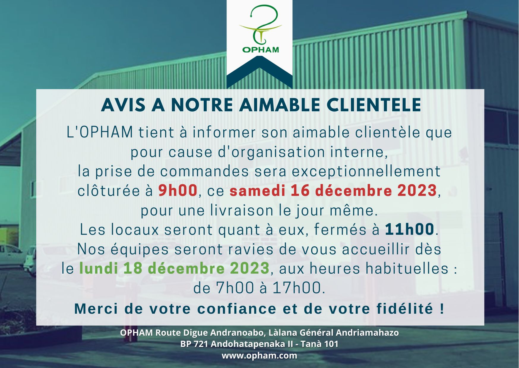 AVIS A NOTRE AIMABLE CLIENTELE